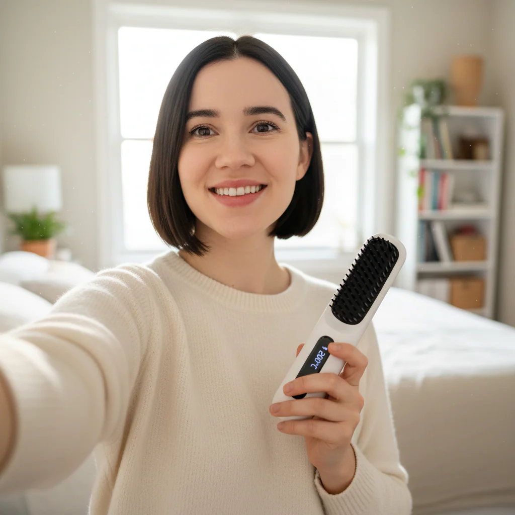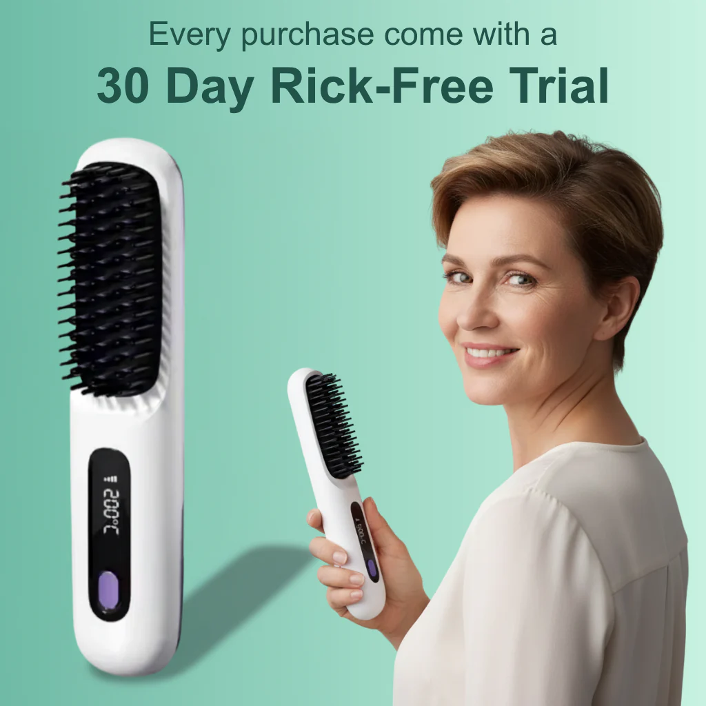 Experience the Glamvera IonSmooth Wireless Hair Styling Brush with confidence! Enjoy a 30-day trial period to see the difference in your hair. If you’re not satisfied, simply return it for a full refund. Discover effortless styling and anti-scalding protection today!